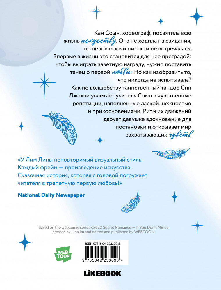 💳 Оплатить за товар можно при получении 🇰🇿 Есть бесплатная доставка по Казахстану 🎁 Копите бонусы с каждой покупки Серия: Земляничные манхвы. Истории о сладкой любви Кан Соын живет танцами. В каждую хореографию она вкладывает силы, умения и кусочек собственной души. Движения ее труппы очаровывают зрителей и жюри. Конкурс, к которому она готовилась всю жизнь, неожиданно ставит балетмейстера в тупик. Как рассказать о первой любви, если ни разу не была в отношениях?.. Загадочный танцор протягивает Кан Соын руку помощи: их тела движутся в унисон, а сердце девушки открывает новые грани чувств и эмоций. |