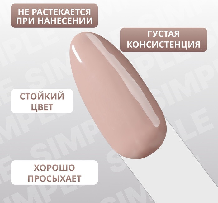 Привлекательная палитра оттенков трехфазных гель-лаков серии «Simple». Палитра серии объединила в себе спокойные и яркие цвета, которые можно дополнять декором и делать маникюр ещё более привлекательным. Такое покрытие придаст образу изюминку и не оставит Вас незамеченной. С этой палитрой гель-лаков Вы можете сочетать цвета из серии «Nude Color Glow», чтобы добавить акцент в дизайн маникюра. Для более оригинального и яркого дизайна Вы можете воспользоваться оттенками лаков из серии «Color Chrome». Гель-лак, в отличии от обычного лака, имеет большое количество преимуществ — он прост в использовании, дольше держится и поддерживает ногти в ухоженном состоянии, а также быстрее высыхает, благодаря сушке лампе (UV и LED-лампах).