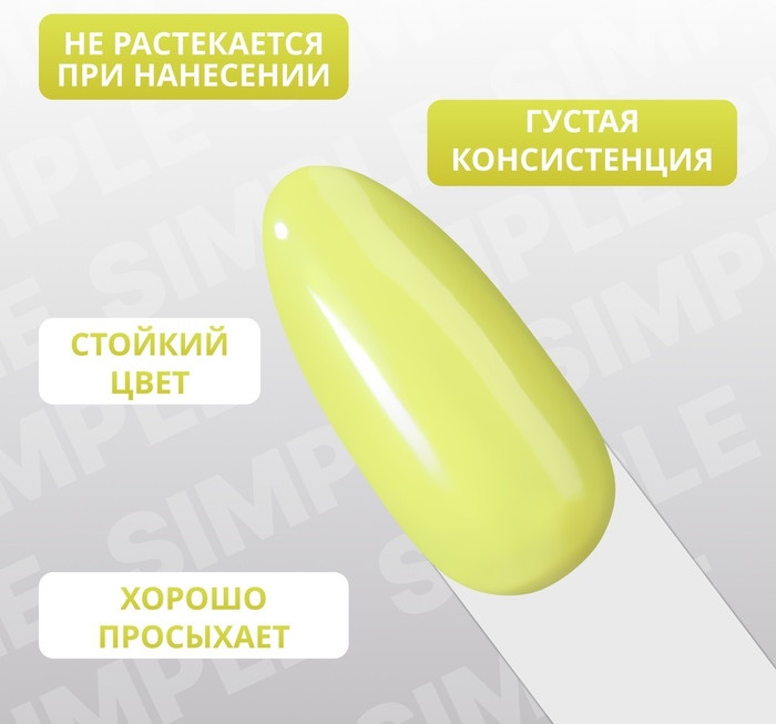 Привлекательная палитра оттенков трехфазных гель-лаков серии «Simple». Палитра серии объединила в себе спокойные и яркие цвета, которые можно дополнять декором и делать маникюр ещё более привлекательным. Такое покрытие придаст образу изюминку и не оставит Вас незамеченной. С этой палитрой гель-лаков Вы можете сочетать цвета из серии «Nude Color Glow», чтобы добавить акцент в дизайн маникюра. Для более оригинального и яркого дизайна Вы можете воспользоваться оттенками лаков из серии «Color Chrome». Гель-лак, в отличии от обычного лака, имеет большое количество преимуществ — он прост в использовании, дольше держится и поддерживает ногти в ухоженном состоянии, а также быстрее высыхает, благодаря сушке лампе (UV и LED-лампах).