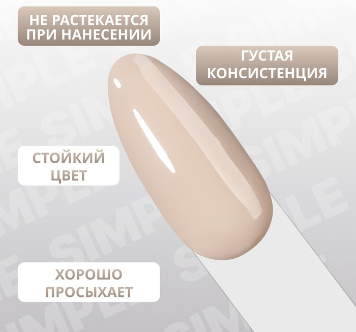 Привлекательная палитра оттенков трехфазных гель-лаков серии «Simple». Палитра серии объединила в себе спокойные и яркие цвета, которые можно дополнять декором и делать маникюр ещё более привлекательным. Такое покрытие придаст образу изюминку и не оставит Вас незамеченной. С этой палитрой гель-лаков Вы можете сочетать цвета из серии «Nude Color Glow», чтобы добавить акцент в дизайн маникюра. Для более оригинального и яркого дизайна Вы можете воспользоваться оттенками лаков из серии «Color Chrome». Гель-лак, в отличии от обычного лака, имеет большое количество преимуществ — он прост в использовании, дольше держится и поддерживает ногти в ухоженном состоянии, а также быстрее высыхает, благодаря сушке лампе (UV и LED-лампах).