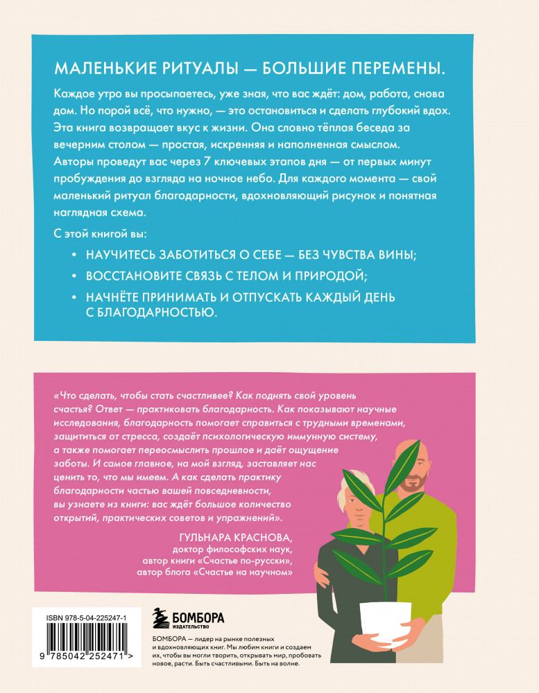 💳 Оплатить за товар можно при получении 🇰🇿 Есть бесплатная доставка по Казахстану 🎁 Копите бонусы с каждой покупки Серия: Хюгге. Уютные книги о счастье Маленькие ритуалы — большие перемены. Начните с одного. И наблюдайте за переменами. Каждое утро вы просыпаетесь, уже зная, что вас ждёт: день расписан по минутам — дом, работа, снова дом. Но порой всё, что действительно нужно, это остановиться и сделать глубокий вдох. Эта книга возвращает вкус к жизни. Она словно тёплая беседа за вечерним столом — простая, искренняя и наполненная смыслом. Авторы проведут вас через 7 ключевых этапов дня — от первых минут пробуждения до последнего взгляда на ночное небо. Для каждого момента — свой маленький ритуал благодарности, который завершается практичными советами и понятной схемой. |
