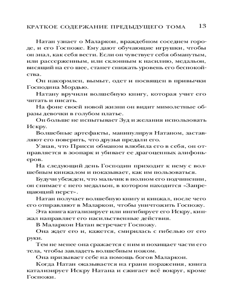 💳 Оплатить за товар можно при получении 🇰🇿 Есть бесплатная доставка по Казахстану 🎁 Копите бонусы с каждой покупки Серия: Fanzon. Наш выбор. Фэнтези Смерть не всегда является концом. Натан Тривз мертв — убит Господином Мордью, а его останки использованы для создания могущественного оккультного оружия, известного как Огниво. Его спутники разбросаны по миру и направляются в Маларкои — город Госпожи, врага Господина. Они надеются найти там приют или хотя бы оказаться в безопасности. Но вместо этого они оказываются втянутыми в смертельную борьбу с злодеями и полубогами, плодами коварных замыслов самой Госпожи. Лишь Сириус, верный магический пес Натана, не забыл мальчика. Одержимый жаждой мести, он возвращается в разрушенный Мордью — и находит город, превращенный в невозможную гору, кишащую чудовищами. Итак, всё готово для последней битвы, для жертвоприношения, проклятой магии и кровавого предательства. Добро пожаловать в Маларкои! |