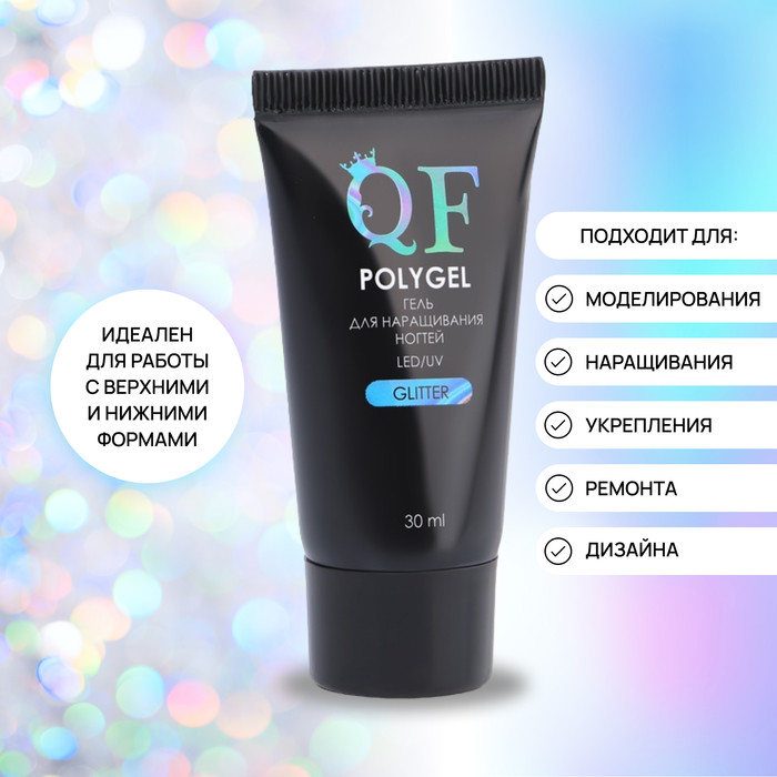 Queen Fair Полигель для наращивания с блёстками трехфазный, оттенок Коричневый