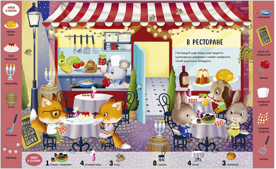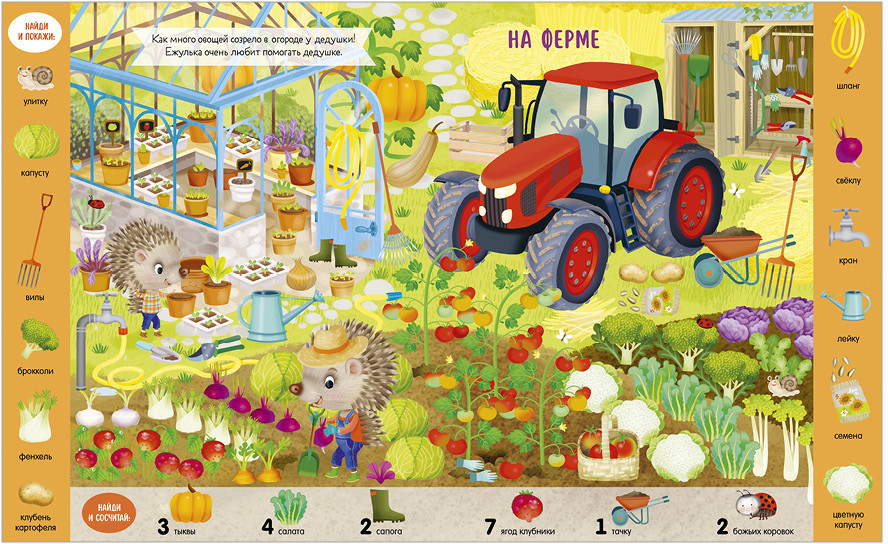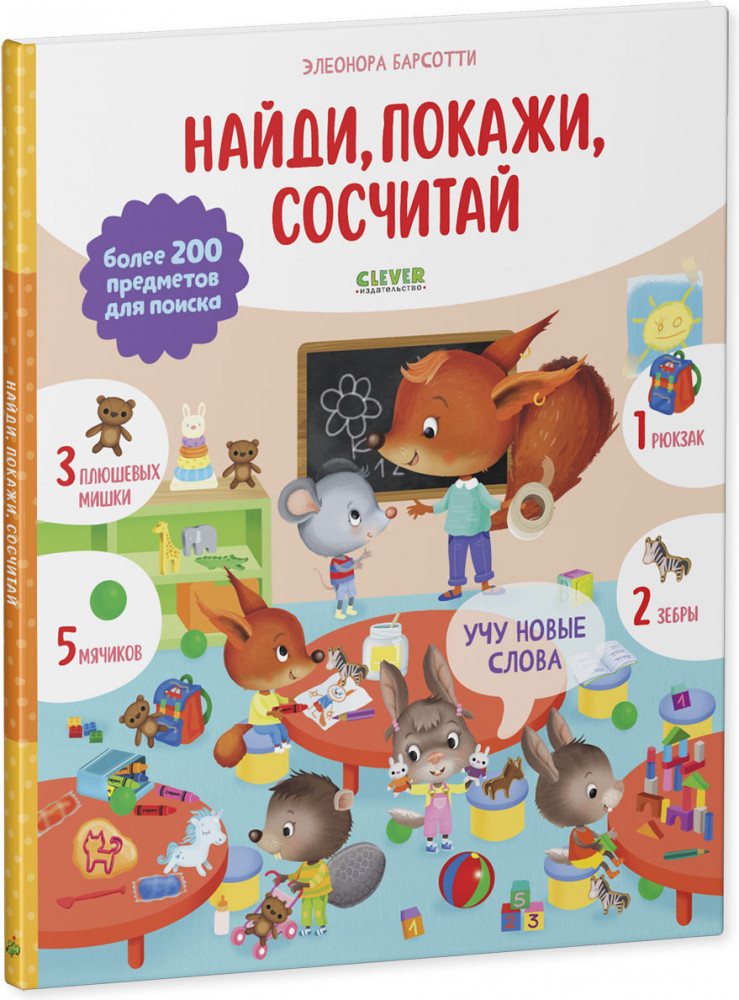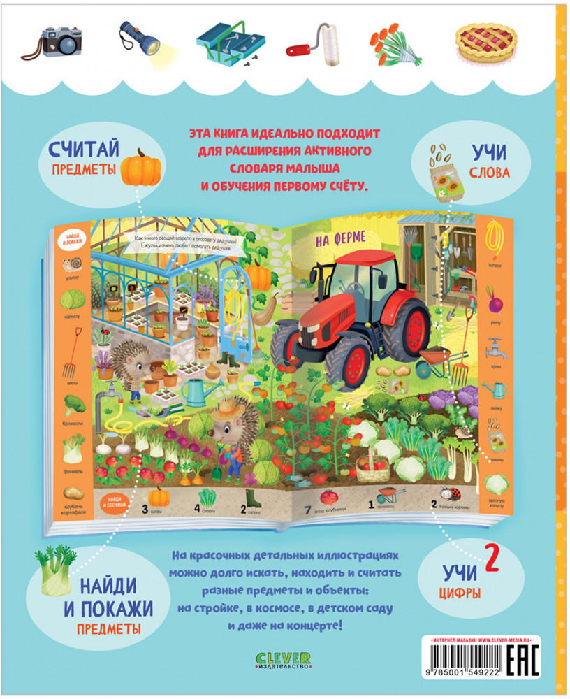 💳 Оплатить за товар можно при получении 🇰🇿 Есть бесплатная доставка по Казахстану 🎁 Копите бонусы с каждой покупки Серия: Найди и покажи Книга «Учу новые слова. Найди, покажи, сосчитай» идеально подходит для расширения активного словаря малыша и обучения первому счету. Играйте в «найди и покажи», считайте предметы и учите слова в каждой новой локации: на концерте, в море и даже в космосе! Разглядывайте вместе с ребенком забавные сценки и выполняйте задания на полях: найти красный рюкзак и сосчитать мячики в детском саду, отыскать лейку и три тыквы на ферме. Тренируйте внимательность, усидчивость и наблюдательность малыша! С книгой ребенок без труда освоит первый счет и пополнит словарный запас: переходите из одного сюжета в другой, найдите и сосчитайте все спрятанные предметы! |