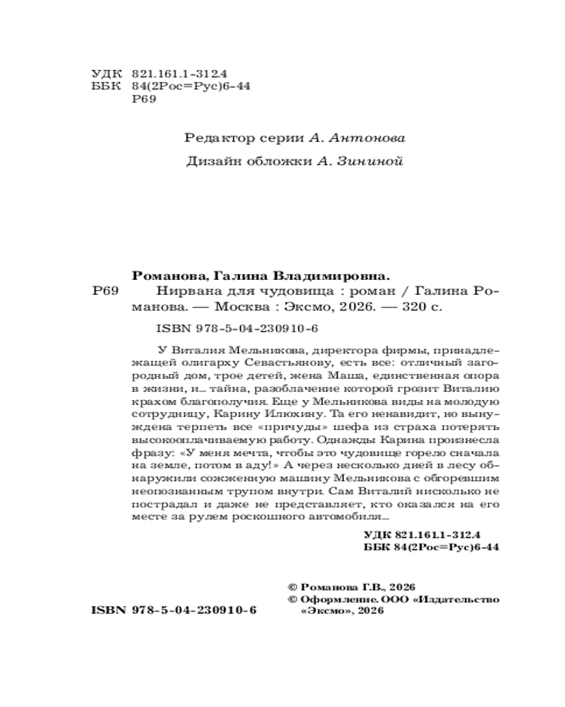💳 Оплатить за товар можно при получении 🇰🇿 Есть бесплатная доставка по Казахстану 🎁 Копите бонусы с каждой покупки Серия: Детективы Галины Романовой. Метод Женщины. Новое оформление (обложка) У Виталия Мельникова, директора фирмы, принадлежащей олигарху Севастьянову, есть всё: отличный загородный дом, трое детей, жена Маша, единственная опора в жизни, и... тайна, разоблачение которой грозит Виталию крахом благополучия. Еще у Мельникова виды на молодую сотрудницу, Карину Илюхину. Та его ненавидит, но вынуждена терпеть все «причуды» шефа из страха потерять высокооплачиваемую работу. Однажды Карина произнесла фразу: «У меня мечта, чтобы это чудовище горело сначала на земле, потом в аду!» А через несколько дней в лесу обнаружили сожженную машину Мельникова с обгоревшим неопознанным трупом внутри. Сам Виталий нисколько не пострадал и даже не представляет, кто оказался на его месте за рулем роскошного автомобиля... |
