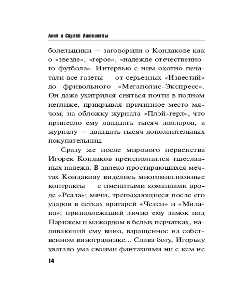 💳 Оплатить за товар можно при получении 🇰🇿 Есть бесплатная доставка по Казахстану 🎁 Копите бонусы с каждой покупки Серия: Знаменитый тандем российского детектива. Новые истории (обложка) Самые богатые и знаменитые футболисты, любимцы миллионов — они собрались на спортивной базе в Подмосковье. Звездам ничто не должно было помешать отдыхать и тренироваться. Но однажды ночью одного из них находят голого в чужой постели с перерезанным горлом. Не вызывает сомнений факт — убийца кто-то из шестерых, находившихся рядом с ним в ту ночь. Один из избранных... Но кто он? И почему решился на преступление?.. |