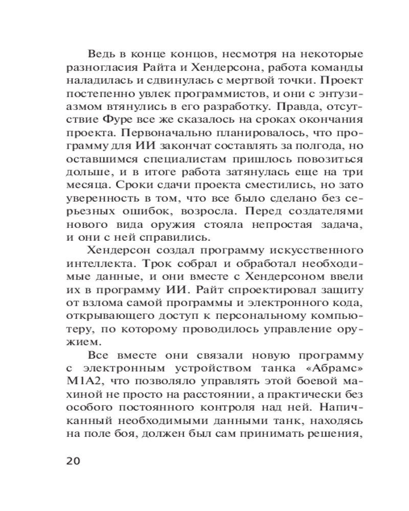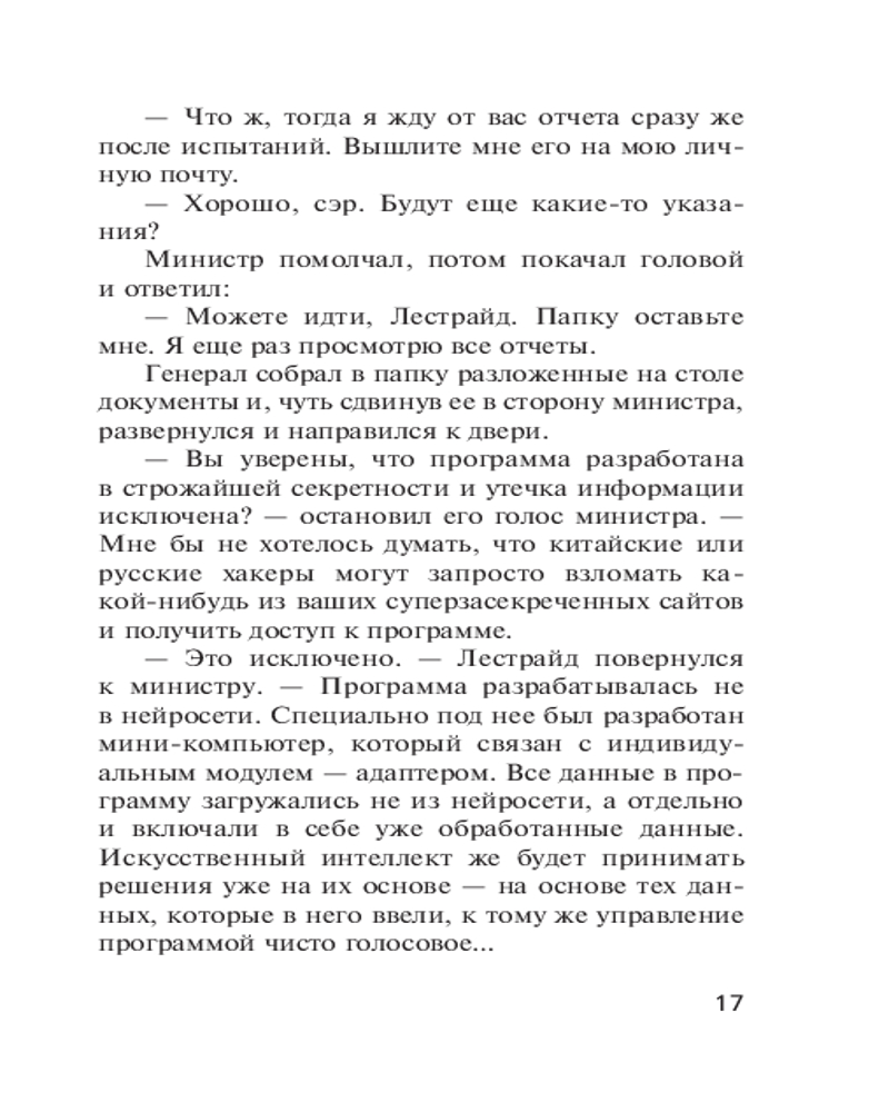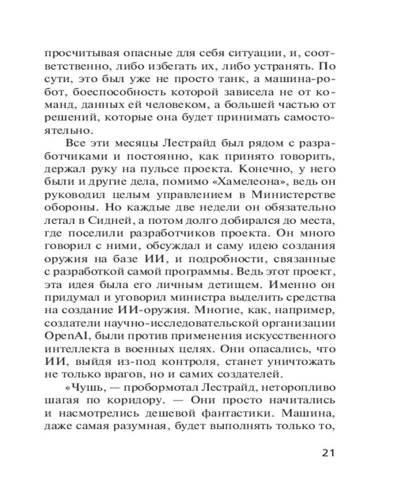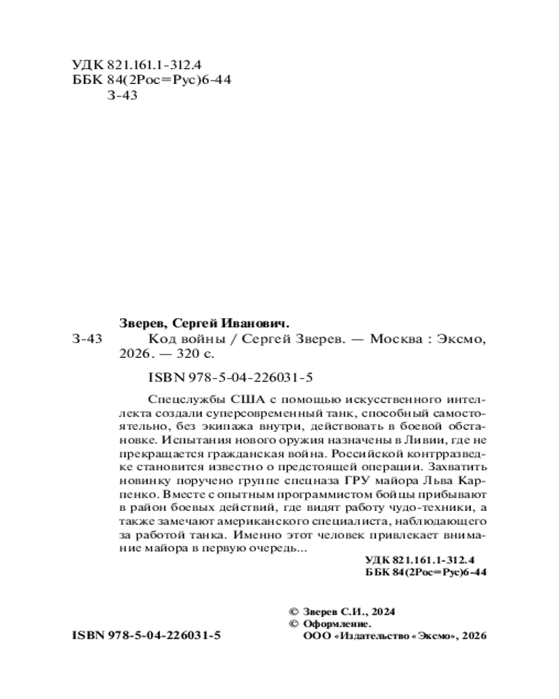 💳 Оплатить за товар можно при получении 🇰🇿 Есть бесплатная доставка по Казахстану 🎁 Копите бонусы с каждой покупки Серия: Спецназ ГРУ. Боевые романы Сергея Зверева (обложка) Спецслужбы США с помощью искусственного интеллекта создали суперсовременный танк, способный самостоятельно, без экипажа внутри, действовать в боевой обстановке. Испытания нового оружия назначены в Ливии, где не прекращается гражданская война. Российской контрразведке становится известно о предстоящей операции. Захватить новинку поручено группе спецназа ГРУ майора Льва Карпенко. Вместе с опытным программистом бойцы прибывают в район боевых действий, где видят работу чудо-техники, а также замечают американского специалиста, наблюдающего за работой танка. Именно этот человек привлекает внимание майора в первую очередь... |