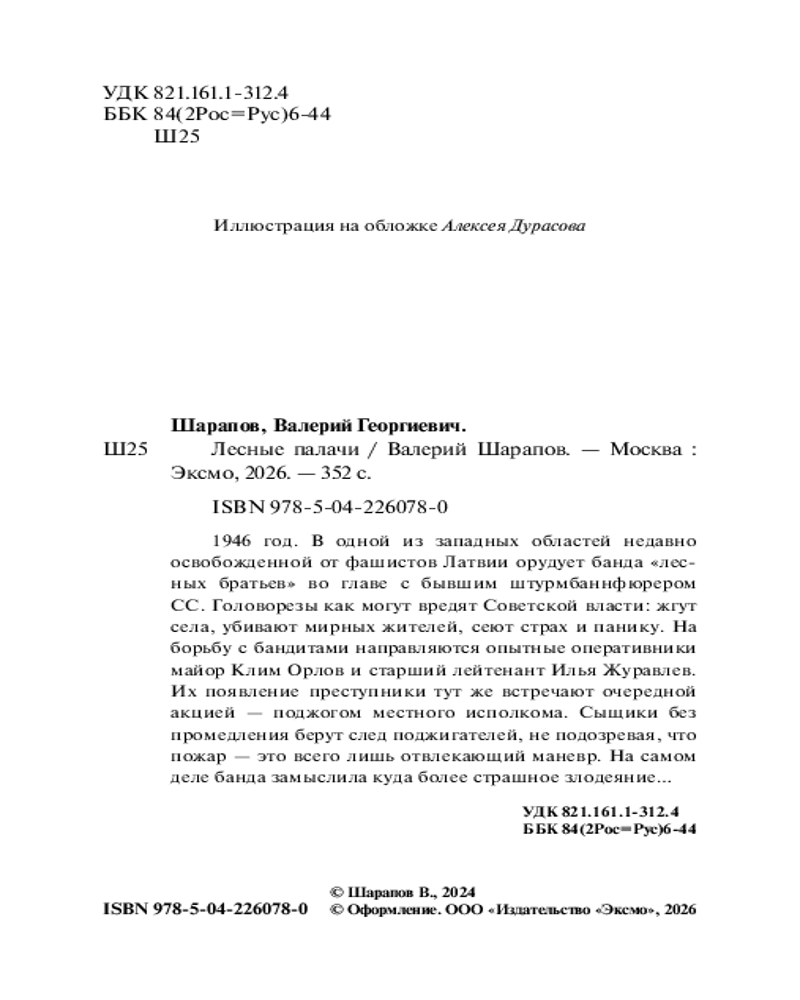 💳 Оплатить за товар можно при получении 🇰🇿 Есть бесплатная доставка по Казахстану 🎁 Копите бонусы с каждой покупки Серия: Тревожная весна 45-го. Послевоенный детектив (обложка) 1946 год. В одной из западных областей недавно освобожденной от фашистов Латвии орудует банда «лесных братьев» во главе с бывшим штурмбаннфюрером СС. Головорезы как могут вредят советской власти: жгут села, убивают мирных жителей, сеют страх и панику. На борьбу с бандитами направляются опытные оперативники майор Клим Орлов и старший лейтенант Илья Журавлев. Их появление преступники тут же «встречают» очередной акцией — поджогом местного исполкома. Сыщики без промедления берут след поджигателей, не подозревая, что пожар — это всего лишь отвлекающий маневр. На самом деле банда замыслила куда более страшное злодеяние... |