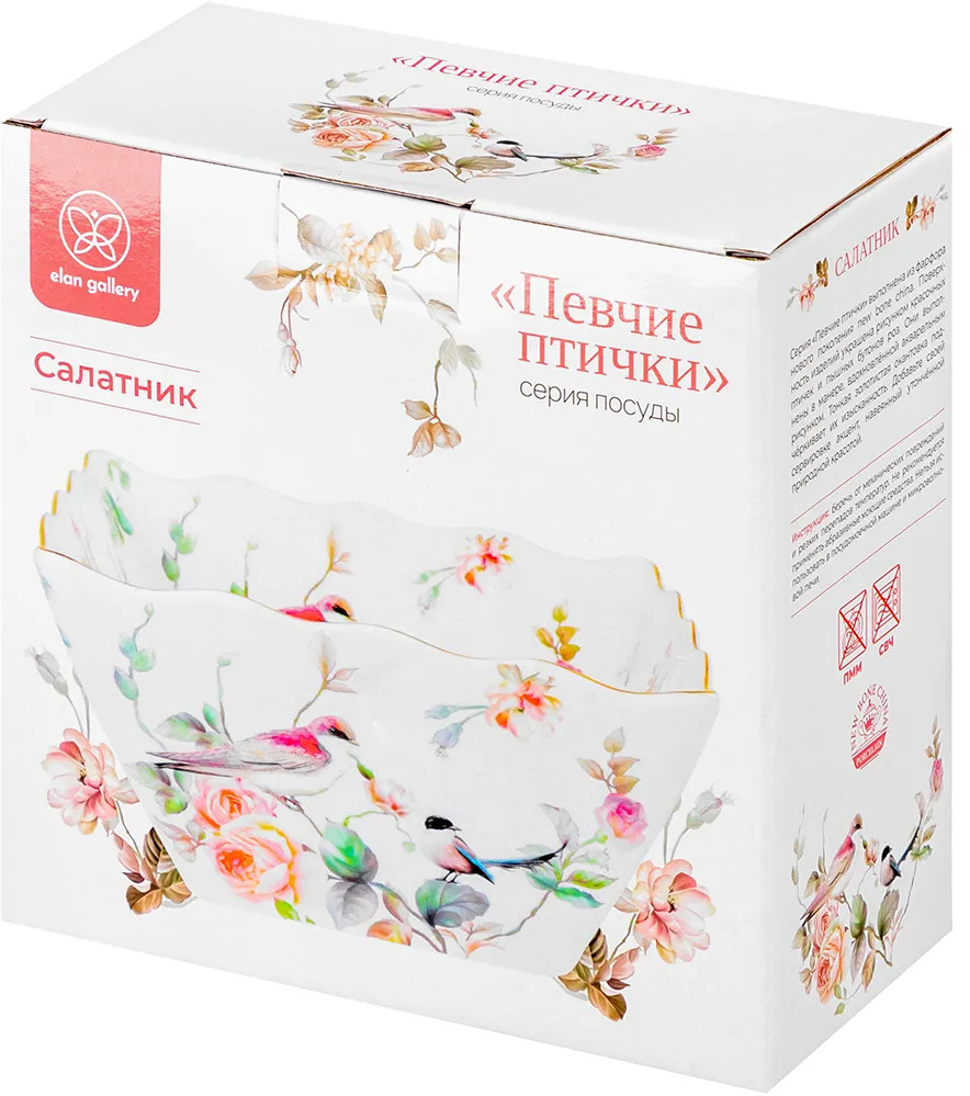 Поставляется в дизайнерской картонной коробке — благодаря ей вам не потребуется дополнительная подарочная упаковка. Фарфоровая сервировочная посуда будет оригинальным подарком для хозяйки, ценящей не только практичность, но и привлекательность. Серия «Певчие птички» от бренда Элан Галерея подарит вам ощущение мечтательной лёгкости!