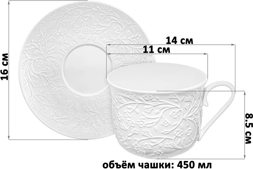 💳 Оплатить за товар можно при получении 🇰🇿 Есть бесплатная доставка по Казахстану 🎁 Копите бонусы с каждой покупки Серия: Веточки-цветочки Чайная пара из серии «Веточки-цветочки» от Elan Gallery предназначена для эстетичной сервировки вашего стола. Размер ёмкости — 14×11×8.5 см, объём — 450 мл. Размер блюдца — 16×16×2 см. Выполнена из высококачественного белого фарфора. Он не впитывает цвет напитков и легко отмывается, благодаря чему надолго сохраняет свою белизну. Поверхность изделия украшают рельефные узоры в виде лиственных веточек с аккуратными цветочными бутончиками. |