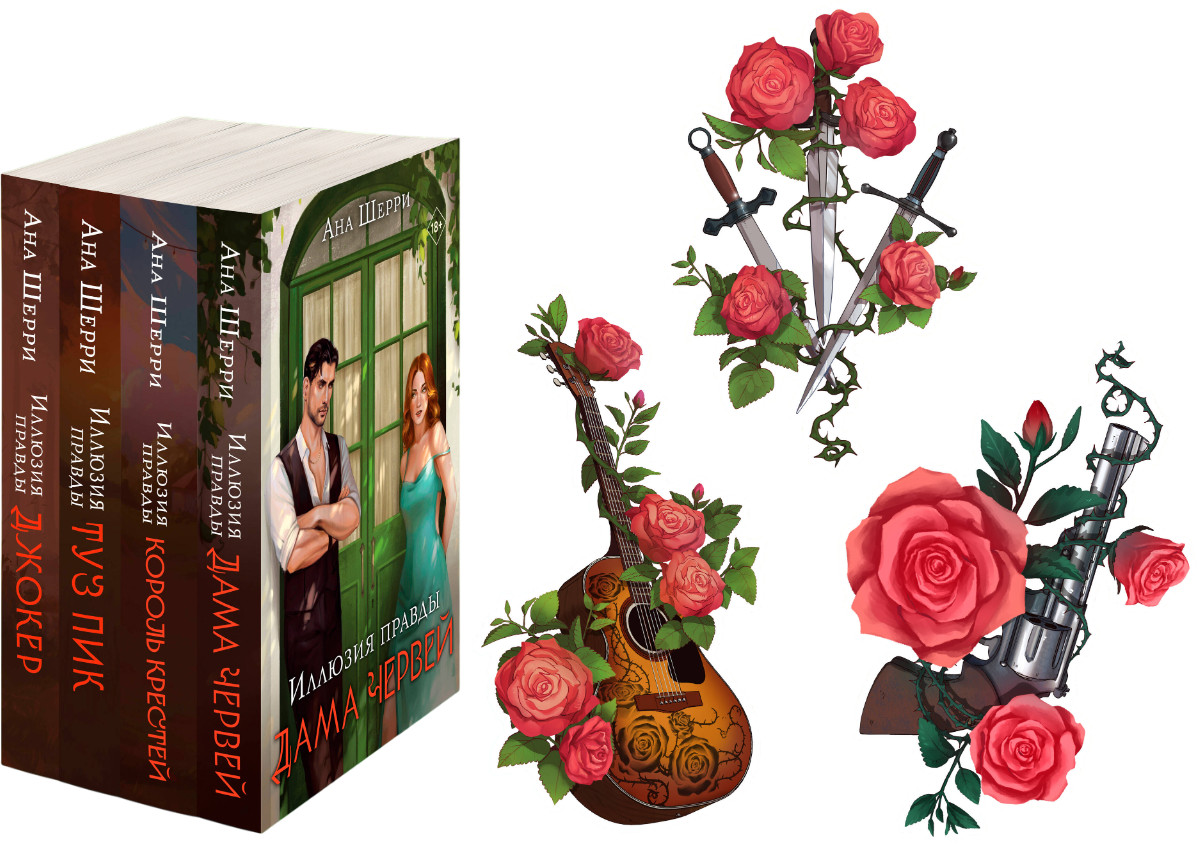 | Иллюзия правды. Дама червей. Король крестей. Туз пик. Джокер. Комплект из 4 книг и 3 подарочных открыток Ана Шерри +423 (бонуса)