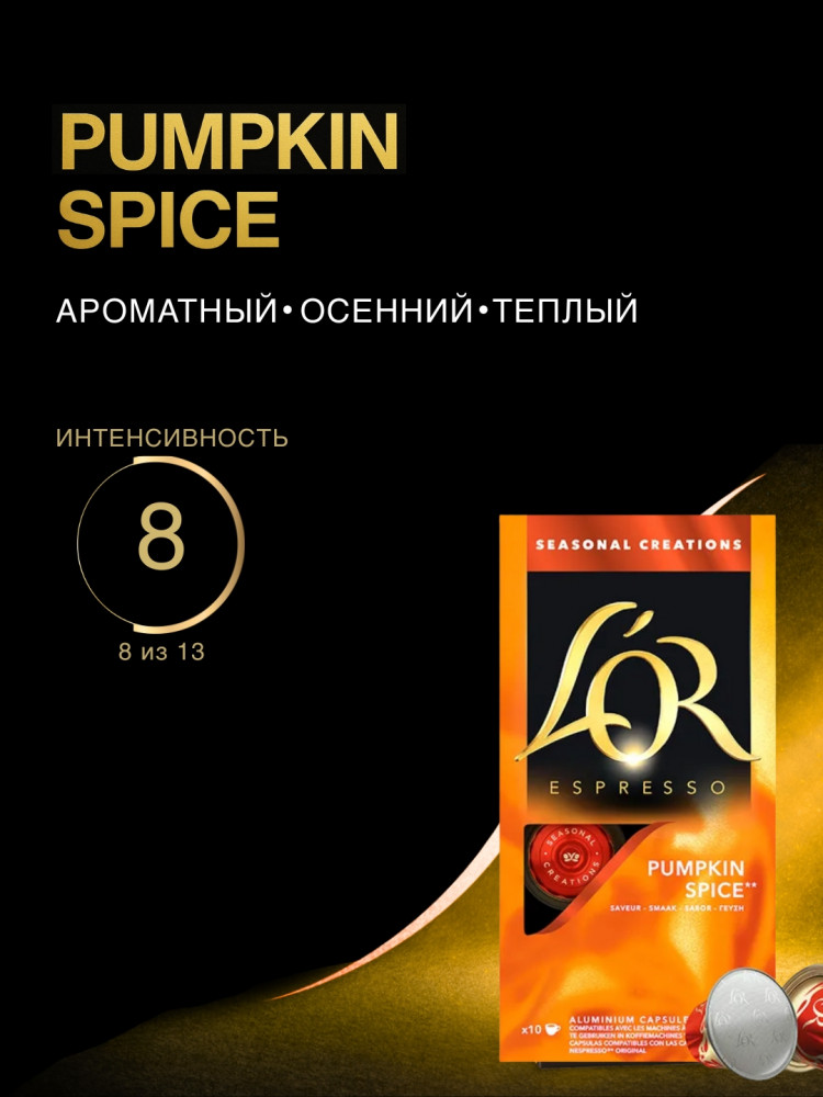 Погрузитесь в атмосферу золотой осени с новым вкусом от L’OR. Манящий аромат корицы, гвоздики, душистого перца и мускатного ореха наполняет пространство теплом и уютом, возвращая к воспоминаниям о прохладных, но таких уютных осенних утра. Наша уникальная смесь — это чёрный кофе с добавлением натуральных пряностей прямо в молотый кофе. Без добавления сахара. Только богатый, многогранный вкус, созданный мастерами кофе L’OR.