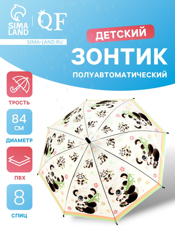 Queen Fair Зонт-трость для девочек «Панда с малышом»+198