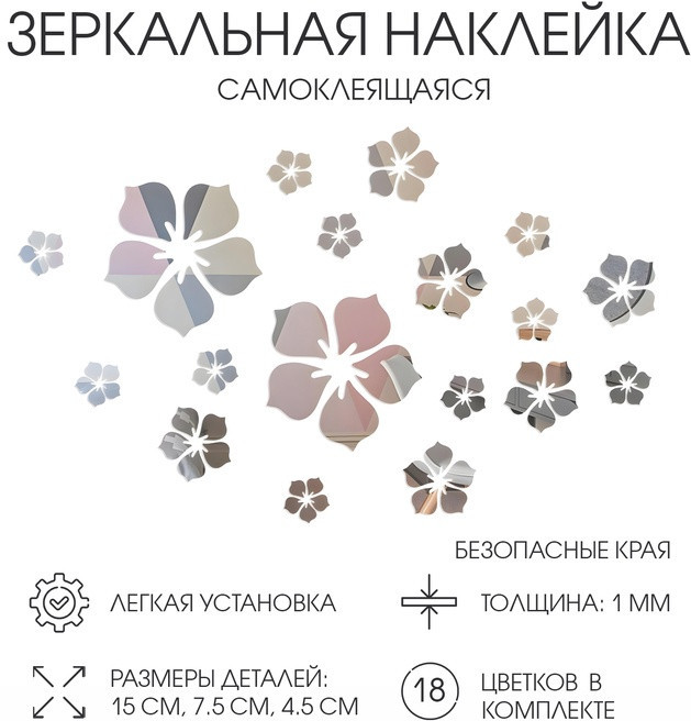 Queen Fair Набор зеркал настенных на клеевой основе «Цветы»+102
