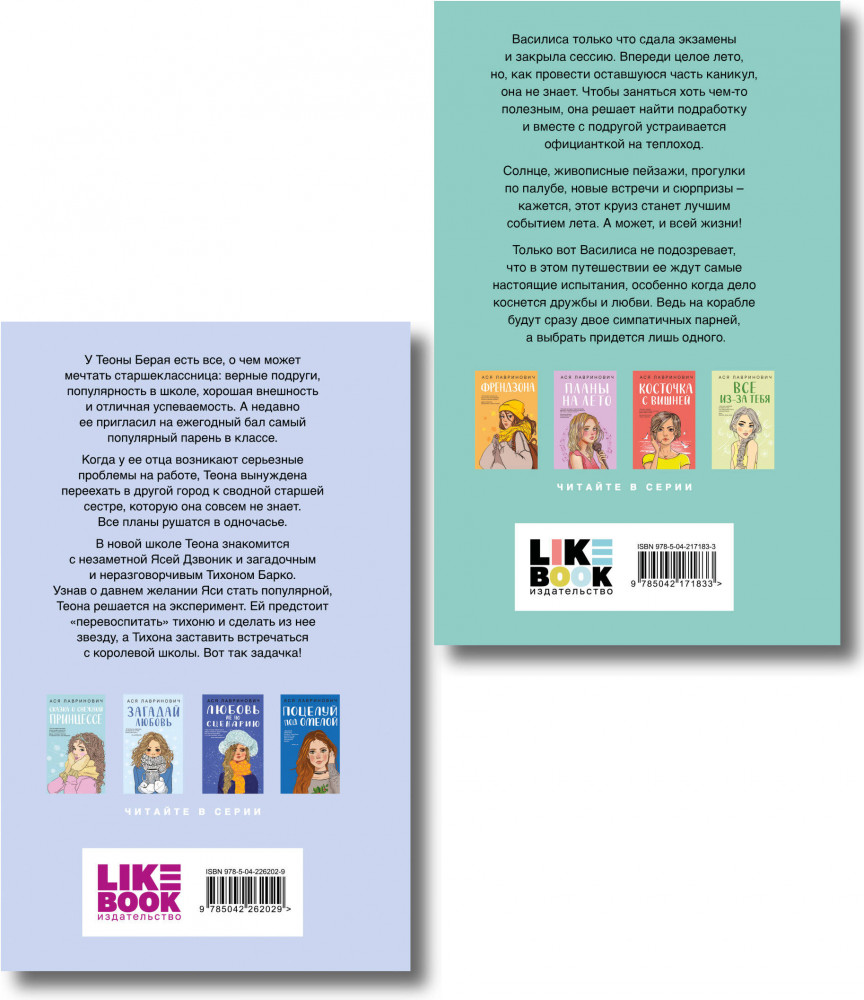 Василиса только что сдала экзамены и закрыла сессию. Впереди целое лето, но как провести оставшуюся часть каникул, она не знает. Чтобы заняться хоть чем-то полезным, она решает найти подработку и вместе с подругой устраивается официанткой на теплоход. Солнце, живописные пейзажи, прогулки по палубе, новые встречи и сюрпризы — кажется, этот круиз станет лучшим событием лета. А может, и всей жизни! Только вот Василиса не подозревает, что в этом путешествии её ждут самые настоящие испытания, особенно когда дело коснётся дружбы и любви. Ведь на корабле будут сразу двое симпатичных парней, и выбрать-то придётся лишь одного. |