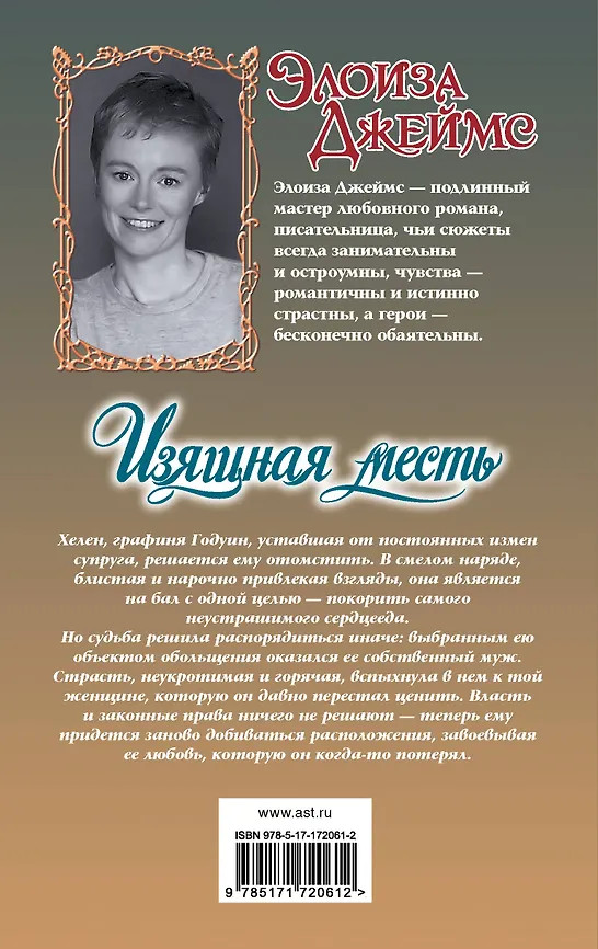 💳 Оплатить за товар можно при получении 🇰🇿 Есть бесплатная доставка по Казахстану 🎁 Копите бонусы с каждой покупки Серия: Очарование Хелен, графиня Годуин, уставшая от постоянных измен супруга, решается ему отомстить. В смелом наряде, блистая и нарочно привлекая взгляды, она является на бал с одной целью — покорить самого неустрашимого сердцееда. Но судьба решила распорядиться иначе: выбранным ею объектом обольщения оказался ее собственный муж. Страсть, неукротимая и горячая, вспыхнула в нем к той женщине, которую он давно перестал ценить. Власть и законные права ничего не решают — теперь ему придется заново добиваться расположения, завоевывая ее любовь, которую он когда-то потерял. |