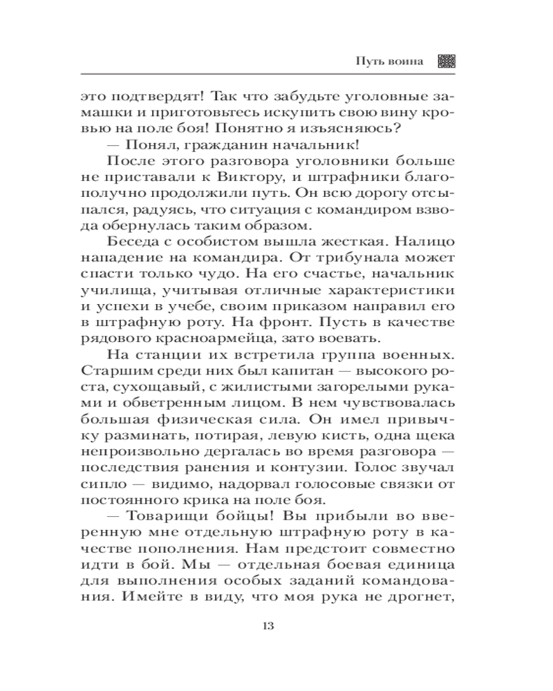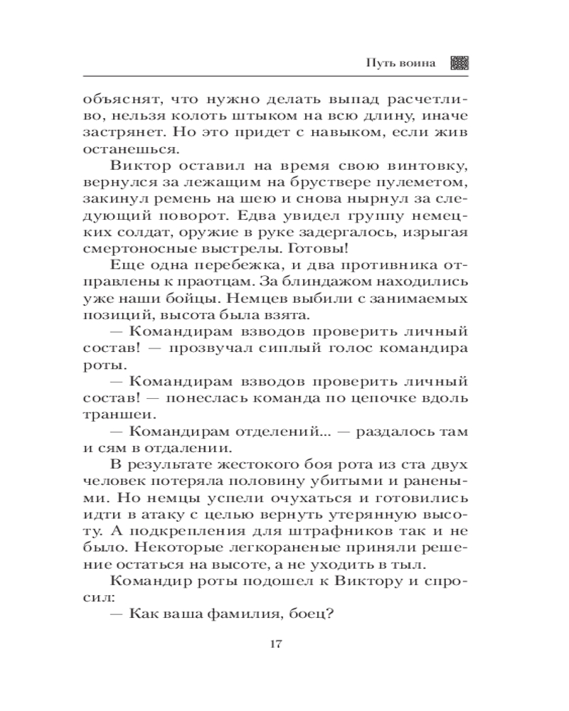 💳 Оплатить за товар можно при получении 🇰🇿 Есть бесплатная доставка по Казахстану 🎁 Копите бонусы с каждой покупки Серия: Новый исторический роман Военно-приключенческий роман «Путь воина» перенесет читателя во времена Великой Отечественной войны. В книге отражены становление и боевой путь фронтового разведчика Виктора Кошелева, начиная с курсантской поры, участия в боях за Крым, спецоперациях на Балканах и в Прибалтике и заканчивая учебой в разведшколе. Увлекательная сюжетная линия основана не только на подлинных исторических событиях, но и на реальных биографических фактах фронтовиков. Читателям, знакомым с другими книгами автора, будет интересно узнать о дальнейшей судьбе Сергея Лысенко — главного героя романа «Амурский сокол». |