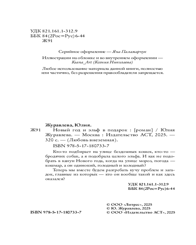 💳 Оплатить за товар можно при получении 🇰🇿 Есть бесплатная доставка по Казахстану 🎁 Копите бонусы с каждой покупки Серия: Любовь внеземная Кто-то подбирает на улице бездомных кошек, кто-то — бродячих собак, а я подобрала целого эльфа. И как не подобрать в канун Нового года, когда на улице мороз, погода — кошмар, а он одинокий, голодный и холодный? Теперь мы вместе будем разгребать кучу проблем и загадок, главные из которых — кто он вообще такой и как здесь оказался? |