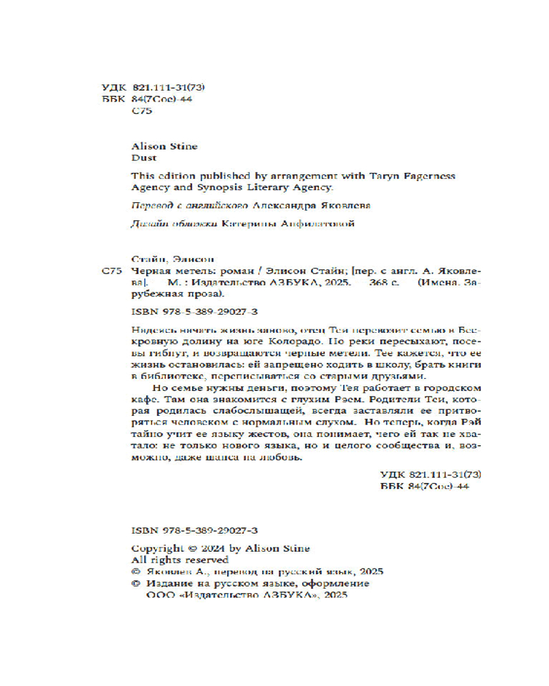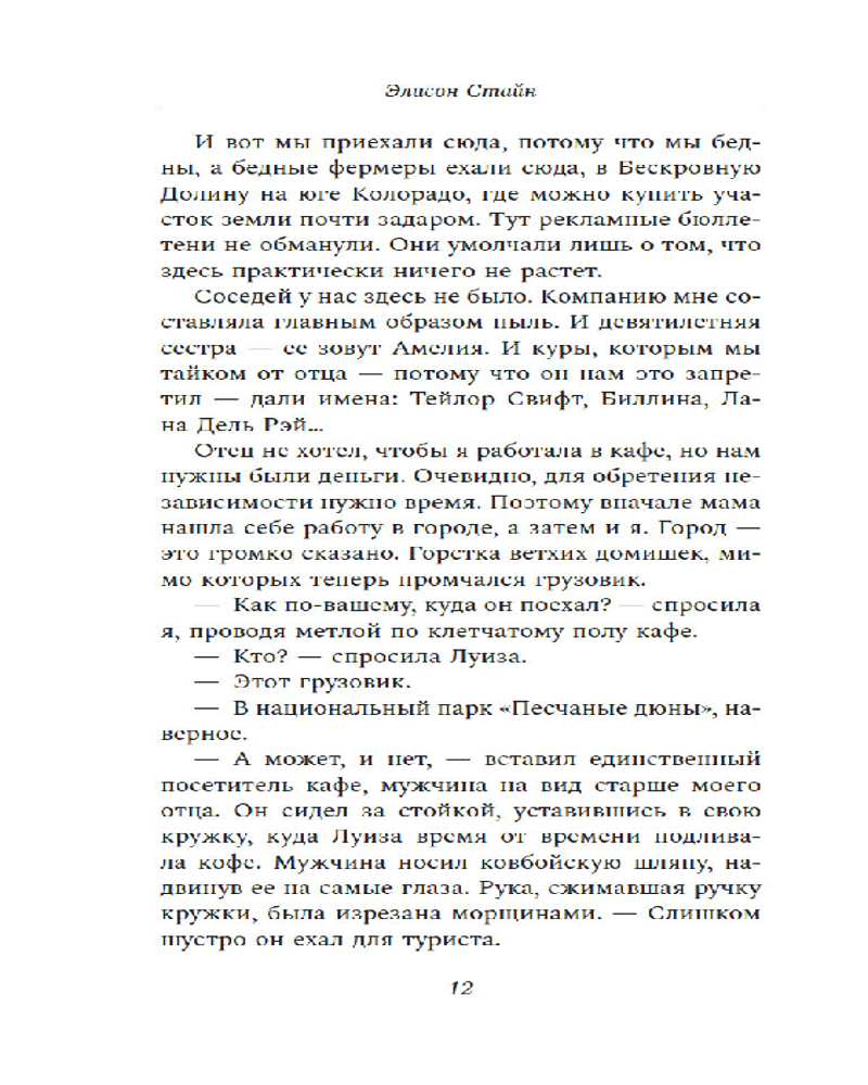 💳 Оплатить за товар можно при получении 🇰🇿 Есть бесплатная доставка по Казахстану 🎁 Копите бонусы с каждой покупки Серия: Имена. Зарубежная проза Надеясь начать жизнь заново, отец Теи перевозит семью в Бескровную долину на юге Колорадо. Но реки пересыхают, посевы гибнут, и возвращаются черные метели. Тее кажется, что ее жизнь остановилась: ей запрещено ходить в школу, брать книги в библиотеке, переписываться со старыми друзьями. |