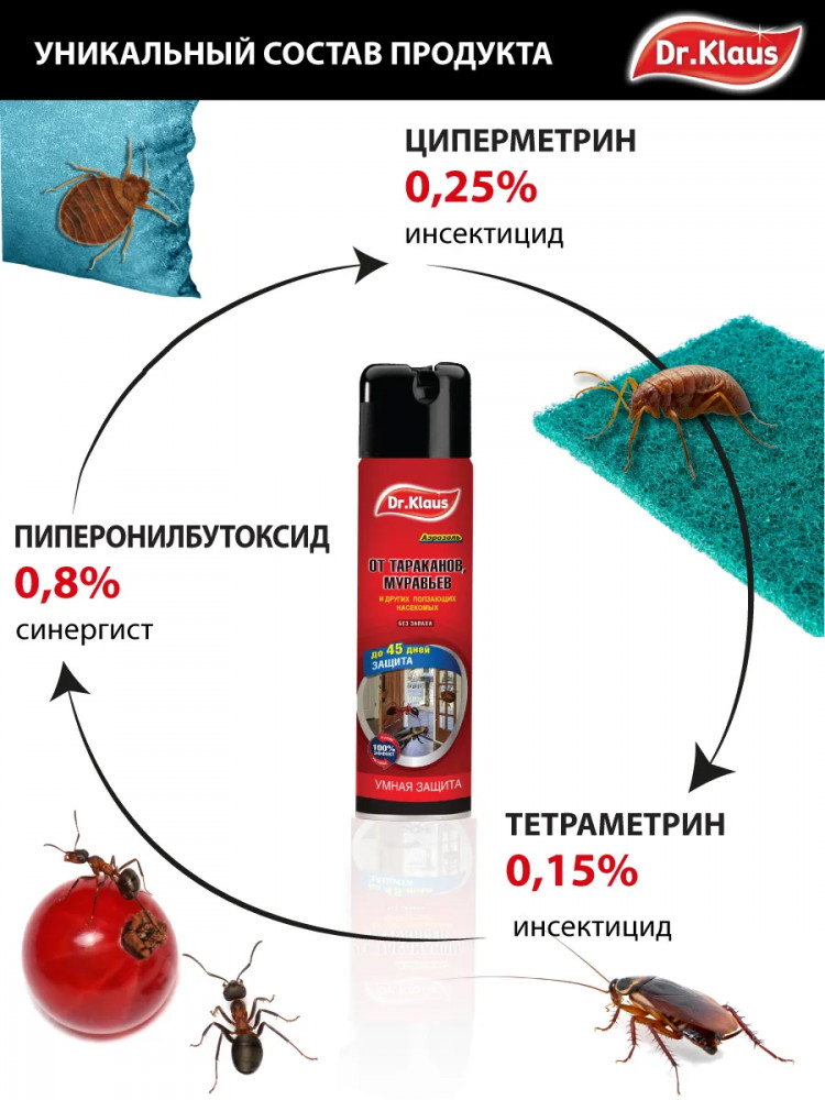 Dr. Klaus Аэрозоль от тараканов, муравьев, блох, клопов и других насекомых