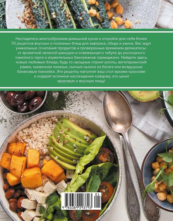 💳 Оплатить за товар можно при получении 🇰🇿 Есть бесплатная доставка по Казахстану 🎁 Копите бонусы с каждой покупки Серия: Высокая кухня Насладитесь многообразием домашней кухни и откройте для себя более 70 рецептов вкусных и полезных блюд для завтрака, обеда и ужина. Вас ждут уникальные сочетания продуктов и проверенные временем деликатесы: от ароматной зеленой шакшуки и освежающего табуле до роскошного томатного тарта и изумительных баклажанов пармиджано. Найдите здесь новые любимые блюда, будь то овощные спринг-роллы, вегетарианский рамен, тыквенная лазанья, сытные ньокки из батата или воздушные банановые панкейки. Эти рецепты наполнят ваш стол яркими красками и подарят истинное наслаждение каждому, кто ценит здоровую и вкусную пищу. |