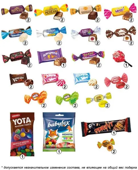 Допускается незначительное изменение состава, не влияющего на общий вес подарка.