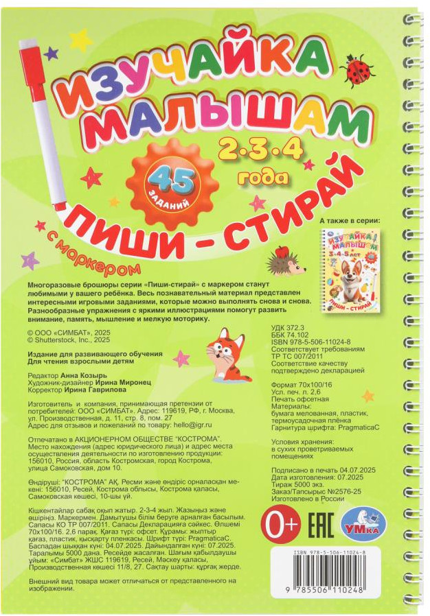 УМка Брошюра на спирали с маркером «Изучайка малышам 2-3-4 года»-30% +81