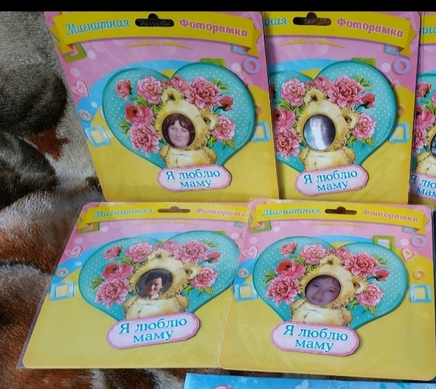 Мне понравилась рамочка, я сразу решила подарить ее маме, просто так без повода, чтоб проходя мимо холодильника она смотрела на мое фото, в такой мимимишной рамочке и вспоминала меня. Фото я распечатала свое, детское, получилось очень мило))) Сама фоторамочка, достаточно большая, я думала она меньше, за это ей большой +. В живую, она даже поярче.