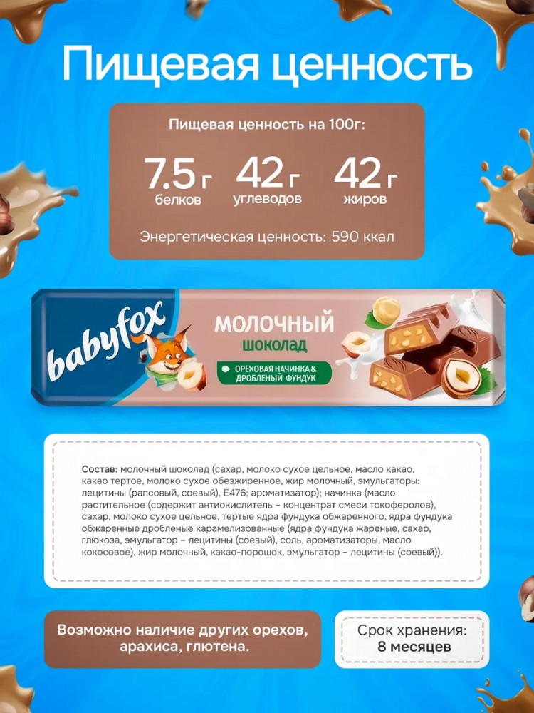 BabyFox Молочный шоколад с ореховой начинкой и дробленым фундуком
