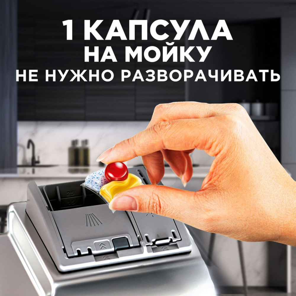 Капсулы для посудомоечных машин Finish для превосходного очищения и безупречного блеска с первого раза, каждый раз. Формула Finish Ultimate очищает в 2 раза более эффективно, справляясь даже с засохшими пятнами спустя 48 часов’, без предварительного замачивания.