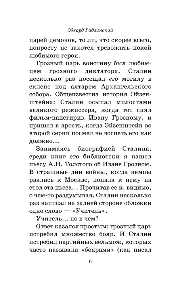 В данный момент этот товар отсутствует в продаже. Возможно, у нас найдется аналогичный или похожий товар здесь. Серия: Династия без грима В страшные дни войны, когда немцы рвались к Москве, на стол к Иосифу Сталину попала пьеса А. Н. Толстого об Иване Грозном. Прочитав её, видимо, о чем-то раздумывая, Сталин несколько раз написал на задней стороне обложке одно слово — «Учитель».
