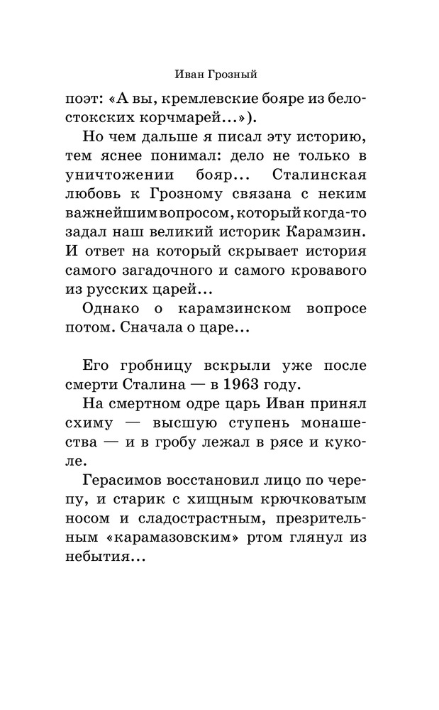Учитель… но в чем? Сталинская любовь к Грозному связана с неким важнейшим вопросом, который когда-то задал наш великий историк Карамзин. И ответ, на который скрывает история самого загадочного и самого кровавого из русских царей… |