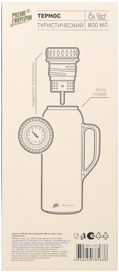 Термос — это надежный помощник для тех, кто ценит комфорт и горячие напитки в любое время суток. Благодаря прочному корпусу и качественной теплоизоляции он долго сохраняет температуру содержимого, позволяя наслаждаться любимым чаем, кофе или свежими прохладительными напитками где угодно — на работе, в дороге или на прогулке. Удобная конструкция обеспечивает легкое открывание и комфортное использование, а стильный современный дизайн делает термос не только практичным, но и привлекательным аксессуаром.