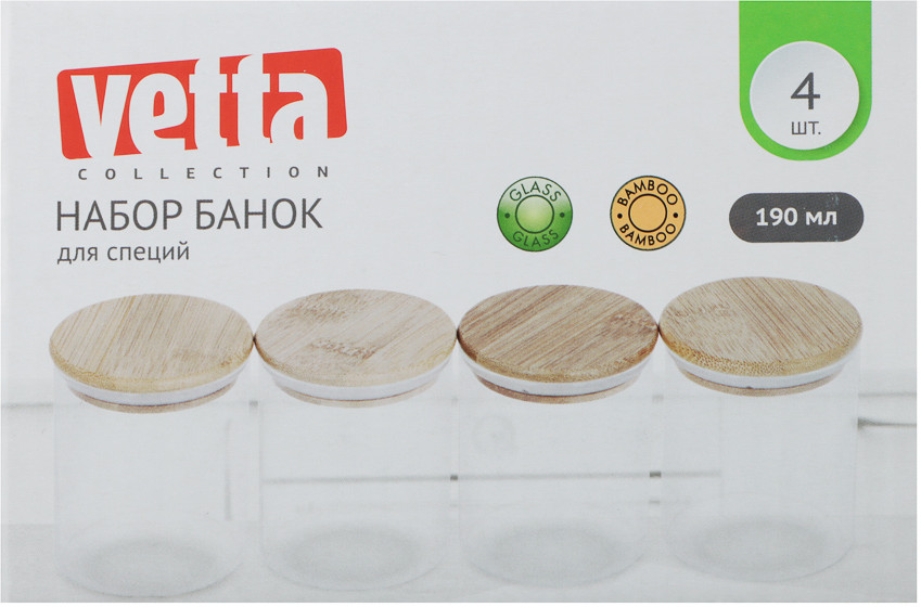 Vetta Набор банок для специйВ данный момент этот товар отсутствует в продаже. Возможно, у нас найдется аналогичный или похожий товар здесь. Набор банок для специй Vetta ЭКО — экологичное решение для хранения приправ. Набор из четырех стеклянных банок объемом 190 мл с бамбуковыми крышками идеально подходит для систематизации специй, сушеных трав, чая или кофе. Компактные размеры и натуральные материалы делают его практичным и стильным элементом кухни. Стеклянные емкости не впитывают запахи, безопасны для продуктов. Бамбуковые крышки — экологичная альтернатива пластику, плотно закрываются. Набор Vetta ЭКО — забота о порядке и природе! |