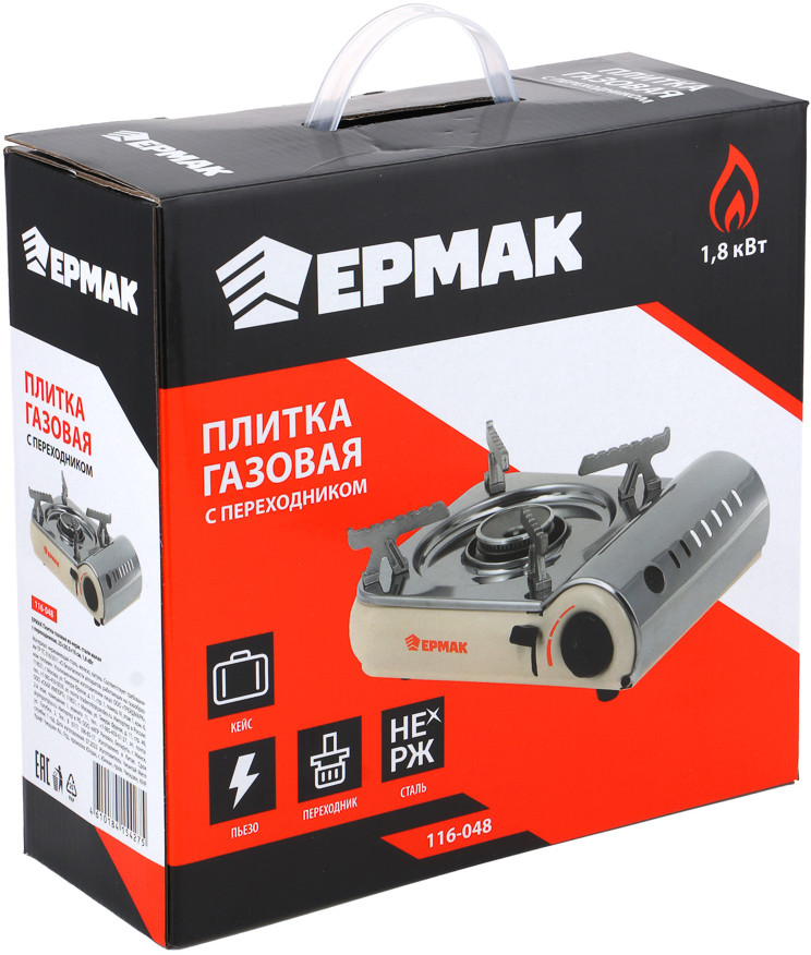 Ермак Плита газовая портативнаяВ данный момент этот товар отсутствует в продаже. Возможно, у нас найдется аналогичный или похожий товар здесь. Газовая плитка из нержавеющей стали Ермак мощностью 1.8 кВт с переходником — это незаменимый прибор для приготовления пищи в условиях кемпинга, в туристических походах, а также на даче или в бытовке. Позволит приготовить полноценный обед в походных условиях, но с домашним комфортом. Имеет компактный размер, легкий вес и привлекательный дизайн. Тип крепления — цанговый. Заправляется газом бутан. Расход топлива — 160 г/час. Корпус из нержавеющей стали не подвержен коррозии. Тип розжига — пьезо. Для удобства транспортировки предусмотрен жесткий пластиковый кейс. |