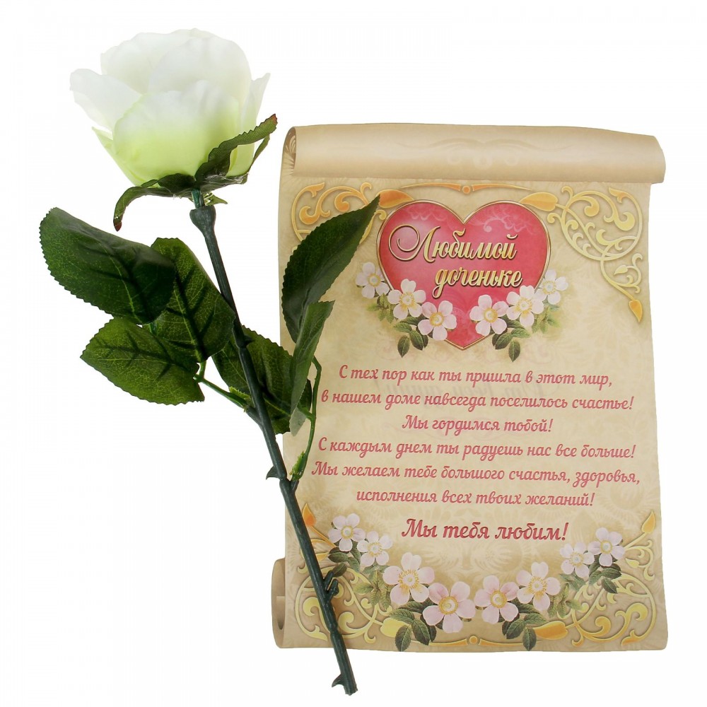 Роза со свитком-пожеланием «Любимой доченьке»В данный момент этот товар отсутствует в продаже. Возможно, у нас найдется аналогичный или похожий товар здесь. Выбор подарка — непростая задача для многих. Роза со |