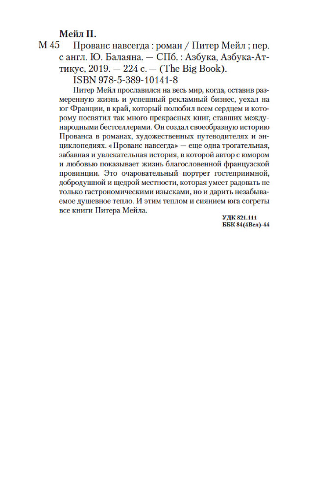 Питер Мейл прославился на весь мир, когда, оставив размеренную жизнь и успешный рекламный бизнес, уехал на юг Франции, в край, который полюбил всем сердцем и которому посвятил так много прекрасных книг, ставших международными бестселлерами. Он создал своеобразную историю Прованса в романах, художественных путеводителях и энциклопедиях. «Прованс навсегда» — еще одна трогательная, забавная и увлекательная история, в которой автор с юмором и любовью показывает жизнь благословенной французской провинции. Это очаровательный портрет гостеприимной, добродушной и щедрой местности, которая умеет радовать не только гастрономическими изысками, но и дарить незабываемое душевное тепло. И этим теплом и сиянием юга согреты все книги Питера Мейла.