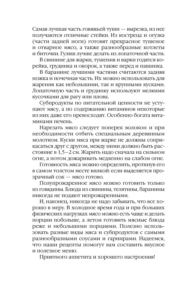 Книга в твердом переплете с простыми листами бумаги. Содержание: это вторые блюда из говядины, телятины, баранины, свинины, кролика, субпродуктов плюс 10 соусов. Все рецепты для приготовления в домашней кухне ежедневно и для праздничного стола,по потребности.