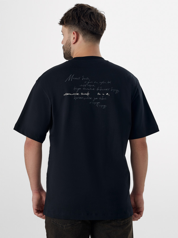 Выразительная надпись становится ярким акцентом, отражающим характер и чувство юмора. Универсальный черный цвет и лаконичный крой позволяют легко сочетать эту модель с джинсами, шортами, спортивными брюками.