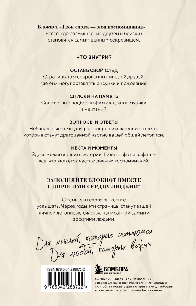 Твои слова — мои воспоминания. Блокнот для тёплых посланий и маленьких историй-20% +47