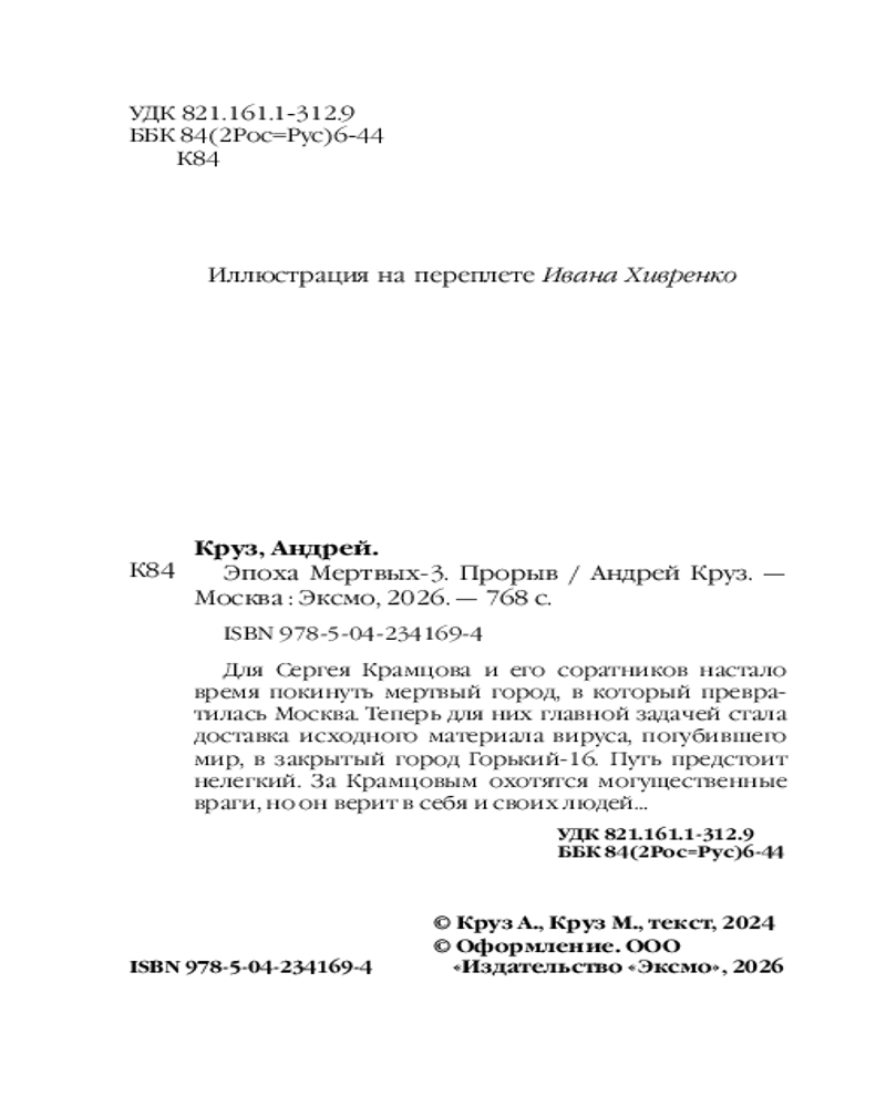 💳 Оплатить за товар можно при получении 🇰🇿 Есть бесплатная доставка по Казахстану от 1 дня 🎁 Копите бонусы с каждой покупки Серия: Боевая фантастика Андрея Круза (покет) Для Сергея Крамцова и его соратников настало время покинуть мертвый город, в который превратилась Москва. Теперь для них главной задачей стала доставка исходного материала вируса, погубившего мир, в закрытый город Горький-16. Путь предстоит нелегкий. За Крамцовым охотятся могущественные враги, но он верит в себя и своих людей... |