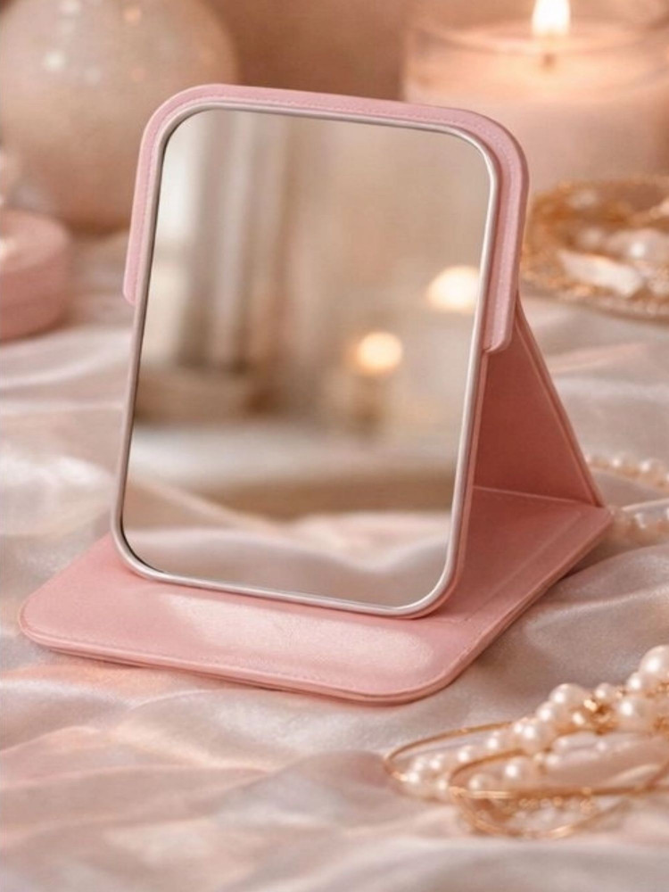 Компактное и лёгкое. Складная конструкция — удобно брать с собой. Устойчиво стоит на поверхности. Чёткое отражение без искажений. Подходит для макияжа, ухода за кожей, бровей. Стильный минималистичный дизайн. Идеально для дома, поездок и сумочки.