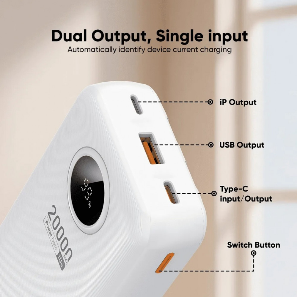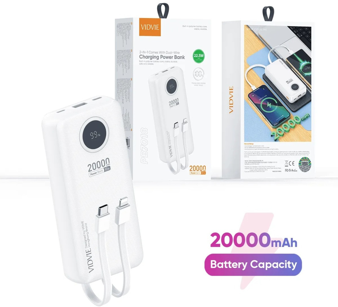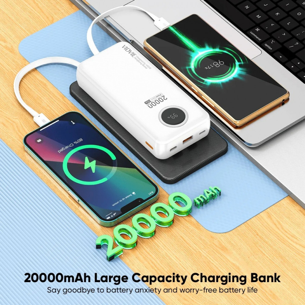 💳 Оплатить за товар можно при получении 🇰🇿 Есть бесплатная доставка по Казахстану от 1 дня 🎁 Копите бонусы с каждой покупки Vidvie PB7018 20000 мАч — это мощный внешний аккумулятор с высокой емкостью, поддерживающий быструю зарядку, оснащенный несколькими портами, включая быстрый Type-C, и часто имеющий встроенные кабели Lightning + Type-C для удобства, подходящий для зарядки смартфонов и других гаджетов несколько раз. |