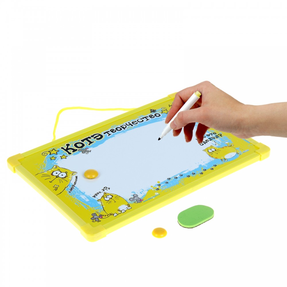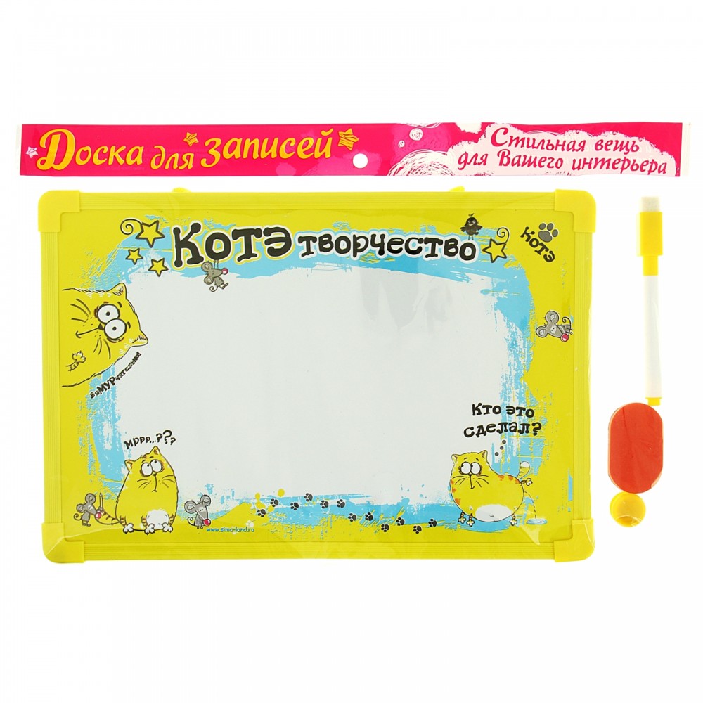 КОТЭ Доска магнитная «КОТЭ творчество» с маркером-стиралкой, магнитами и губкойВ данный момент этот товар отсутствует в продаже. Возможно, у нас найдется аналогичный или похожий товар здесь. Доска для записей на шнурочке с металлической основой в яркой веселой рамке непременно поднимет настроение всем домочадцам! Прикрепите ее на любую стену и записывайте все самое интересное: послание семье и любимым, рецепты и меню ужина. А для детей это отличное поле для творчества, организации своего дня, расписания уроков. В наборе имеется специальный маркер, два магнитика и губка, которая освободит место для новых невероятных идей и записей.  |
