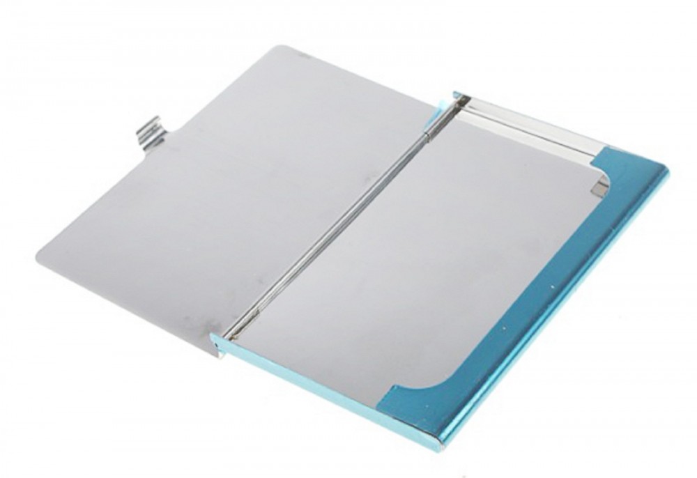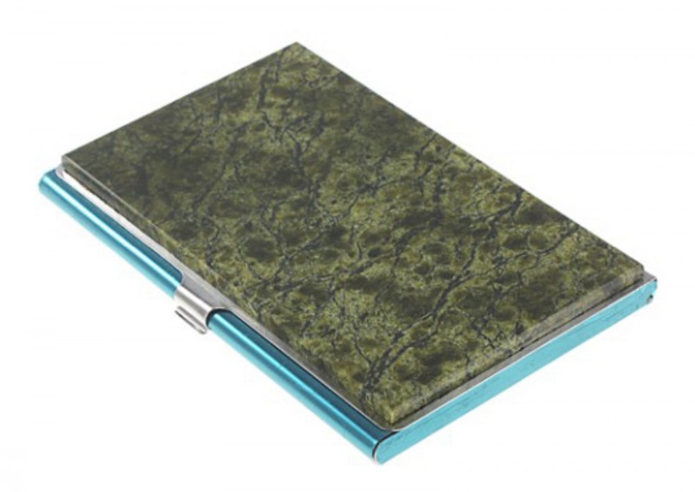 На фото почему-то голубая - на самом деле металлический корпус, блестящий. Аккуратная, стильная, солидная. Мужу понравилась. По объему небольшая, скорее для своих визиток, чем чужих.