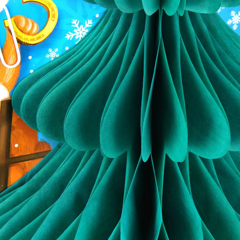Изделие выполнено из бумаги с гофрированным центром. Просто потяните половинку ёлки в сторону, и она раскроется волшебным веером, создавая атмосферу праздника!