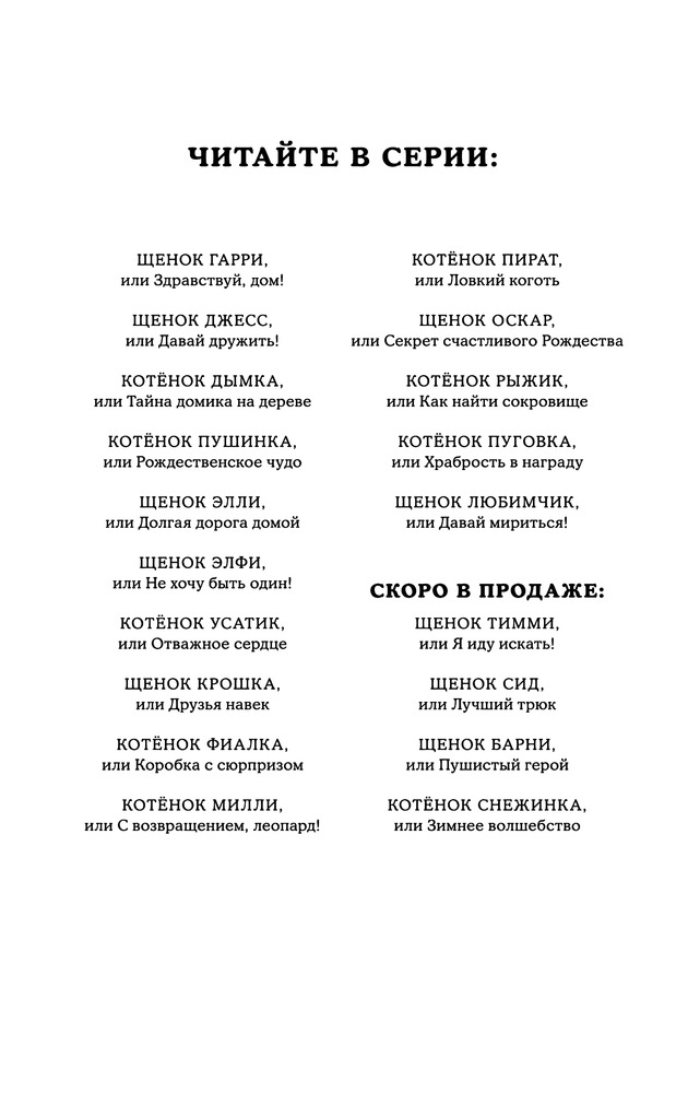 Книга очень увлекла ребенка. Прочел ее за 1 день. Просит купить всю серию книг. Шрифт крупный, легко читается. Истории добрые, трогательные. Если ваш ребенок не любит читать, попробуйте предложить эту. Отлично подходит для первого самостоятельного чтения.
