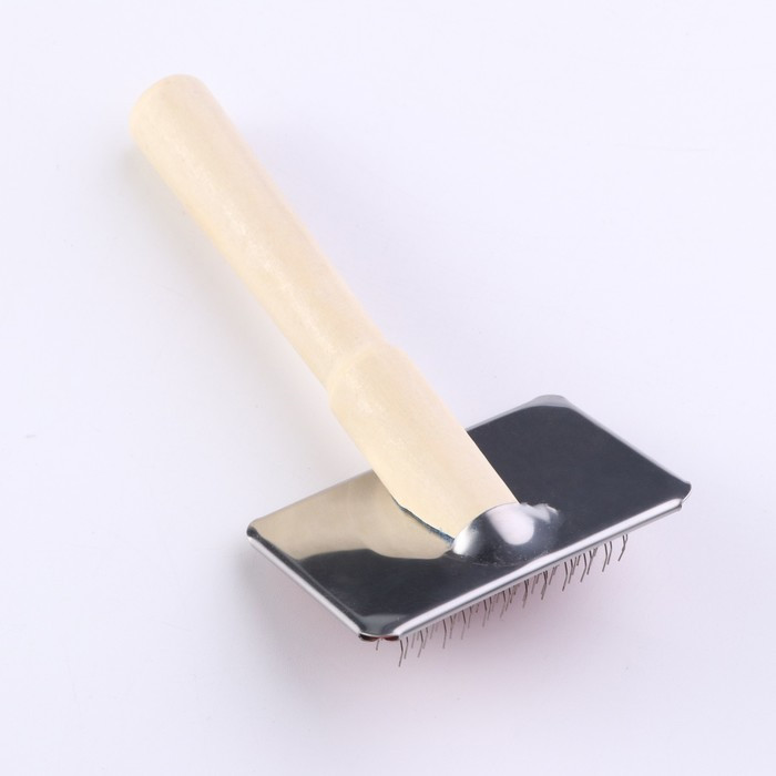 Пижон Пуходерка без капель малая c деревянной ручкой-25% +32 эффективное вычесывание нравится питомцам подходит для маленьких животных сбор шерсти на расческе малый размер