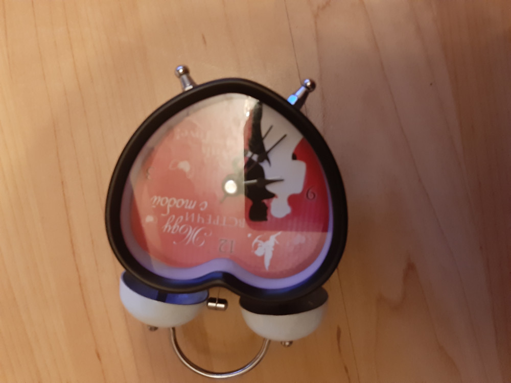 Красивый дизайн, небольшой, аккуратный. Очень звонкий. Не обратила внимание, что нет разметок вместо отсутствующих цифр на циферблате, это неудобно.