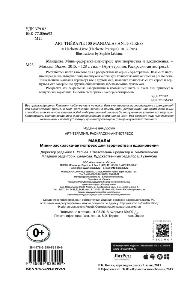 💳 Оплатить за товар можно при получении 🇰🇿 Есть бесплатная доставка по Казахстану 🎁 Копите бонусы с каждой покупки Серия: Арт-терапия. Раскраски-антистресс Расслабьтесь после тяжелого дня с раскрасками из серии |